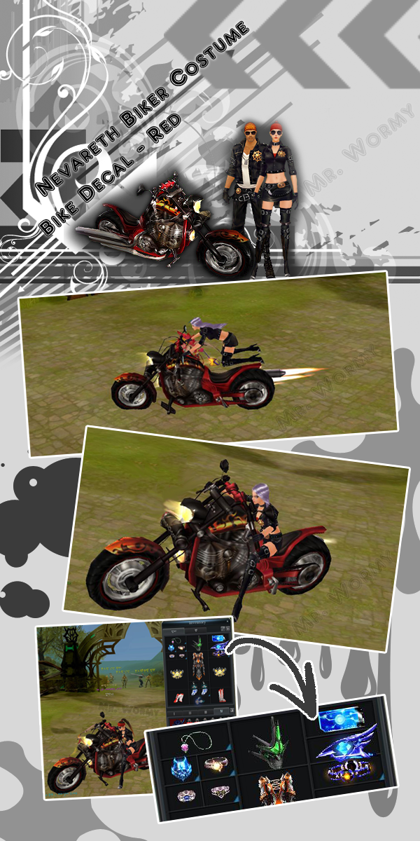 Today, Korean Cabal has just released the BRAND-NEW Cash Shop item : Bike Decal – Red, along with Cabal Nevareth Biker Costume as well as Bandana Biker.