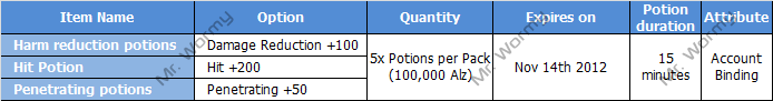10. Add new potion in NPC Store (these potions are sold for only 2 weeks, until Nov 14th 2012)