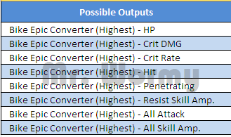 5. Change the stats granted when using Bike Epic Converter (Highest)