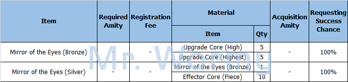 - Effector Core (Piece): Material for requesting Mirror of the Eyes (Silver)