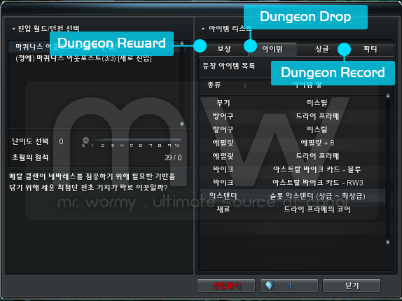 1. Dungeon Entry window now changes to show list of available drop items