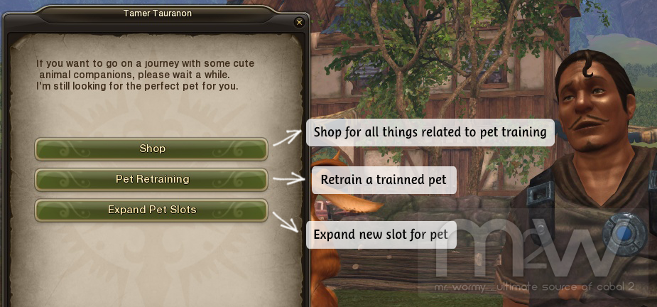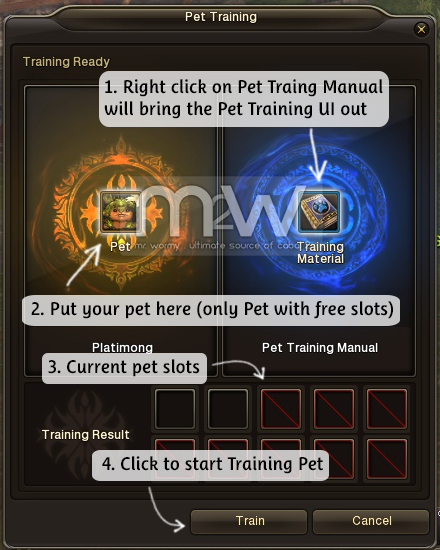 Feel that your pet options are lame? You can retrain it at anytime. Bring a trained pet to NPC Tauranon, he will reset it for free (you have to wait for 1hr – or you can push the progress, use a Pet Retraining Manual, to make retrain finish instantly).