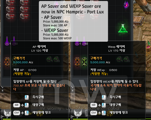 - NPC Hampric in Port Lux now sells WEXP Saver