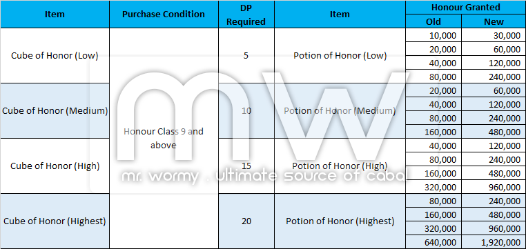 - Random Item > DP Cube > Cube of Honor (Low ~ High)
