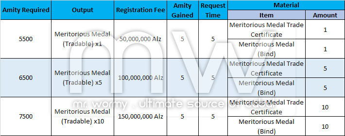 - Meritorious Medal Trade Certificate x1 : 5,000,000