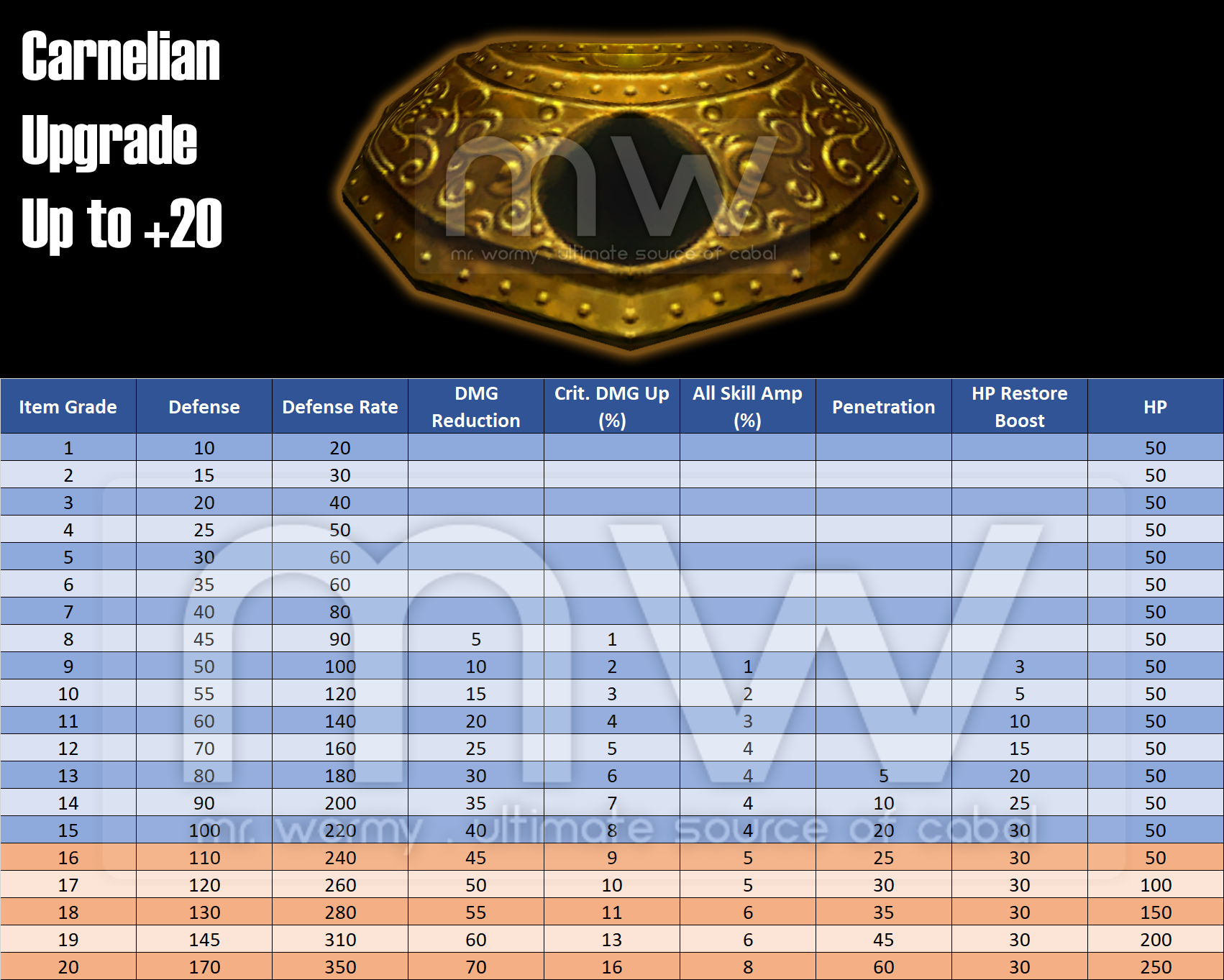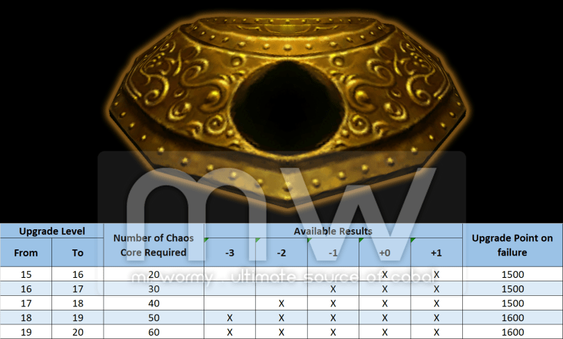 1. Increase the limitation of Chaos Upgrade for Carnelian from +15 to +20