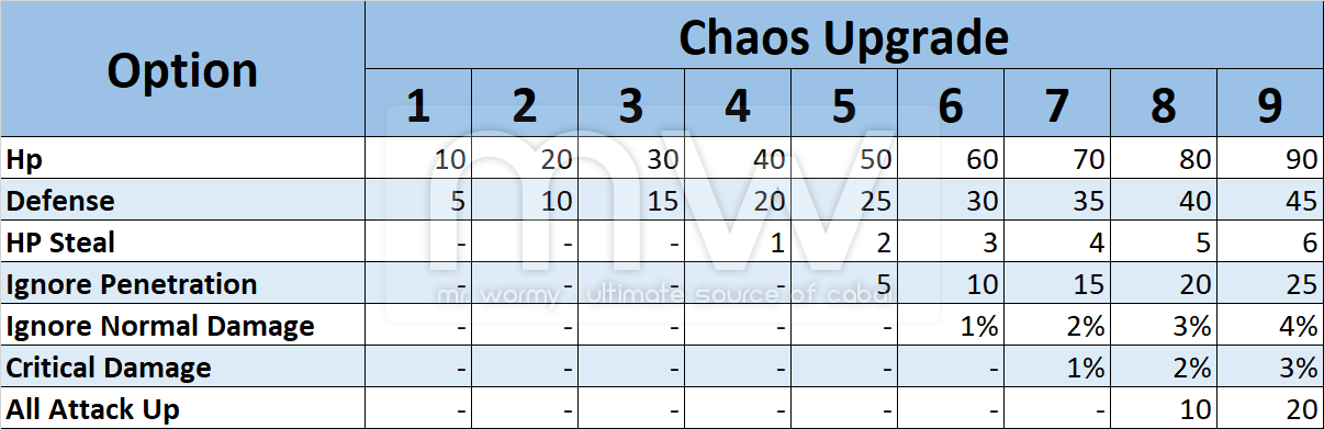 - Failure: Chaos Level reset (remove Chaos Level, need to do Convert again, item won’t be destroyed)