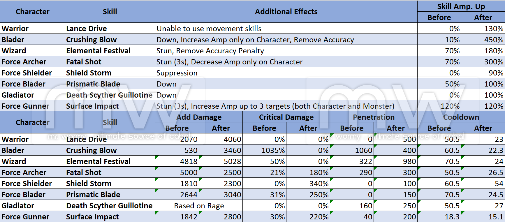 - General: Special Effect of skills have 95% chance of success (Stun / Down / Knockback)