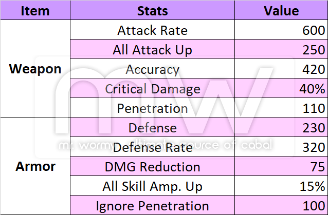 - Set effect: Defense +25, Defense Rate +70 (when equipping all 4 items of Demonite)