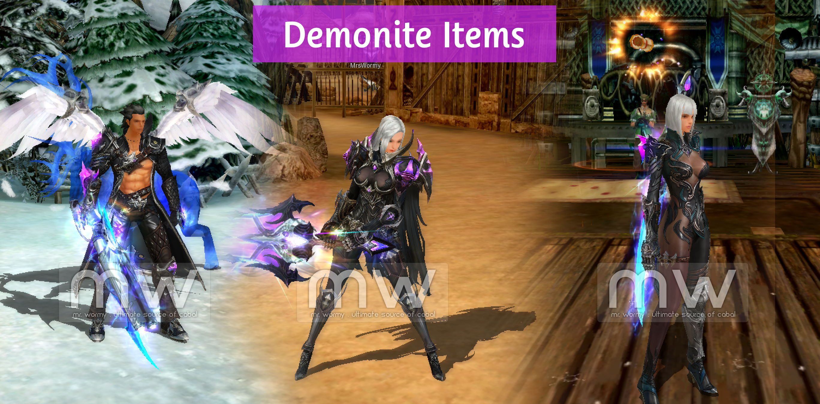 - At this moment only Demonite Sub-Epic items are available in-game (meant green-text item)
