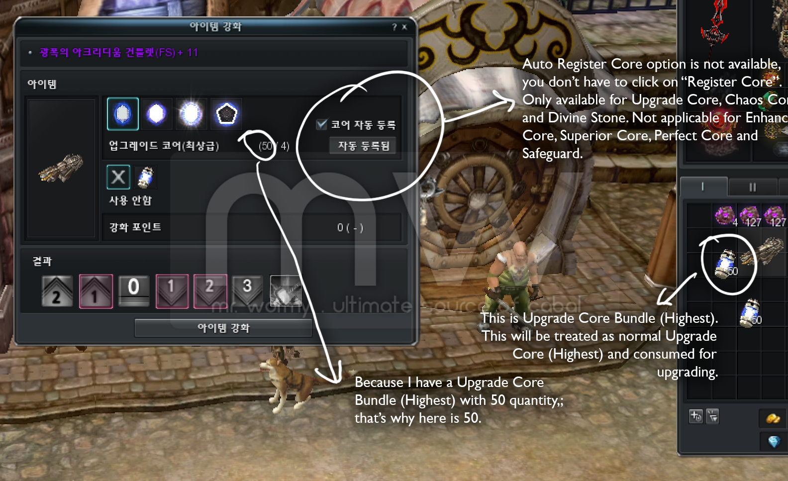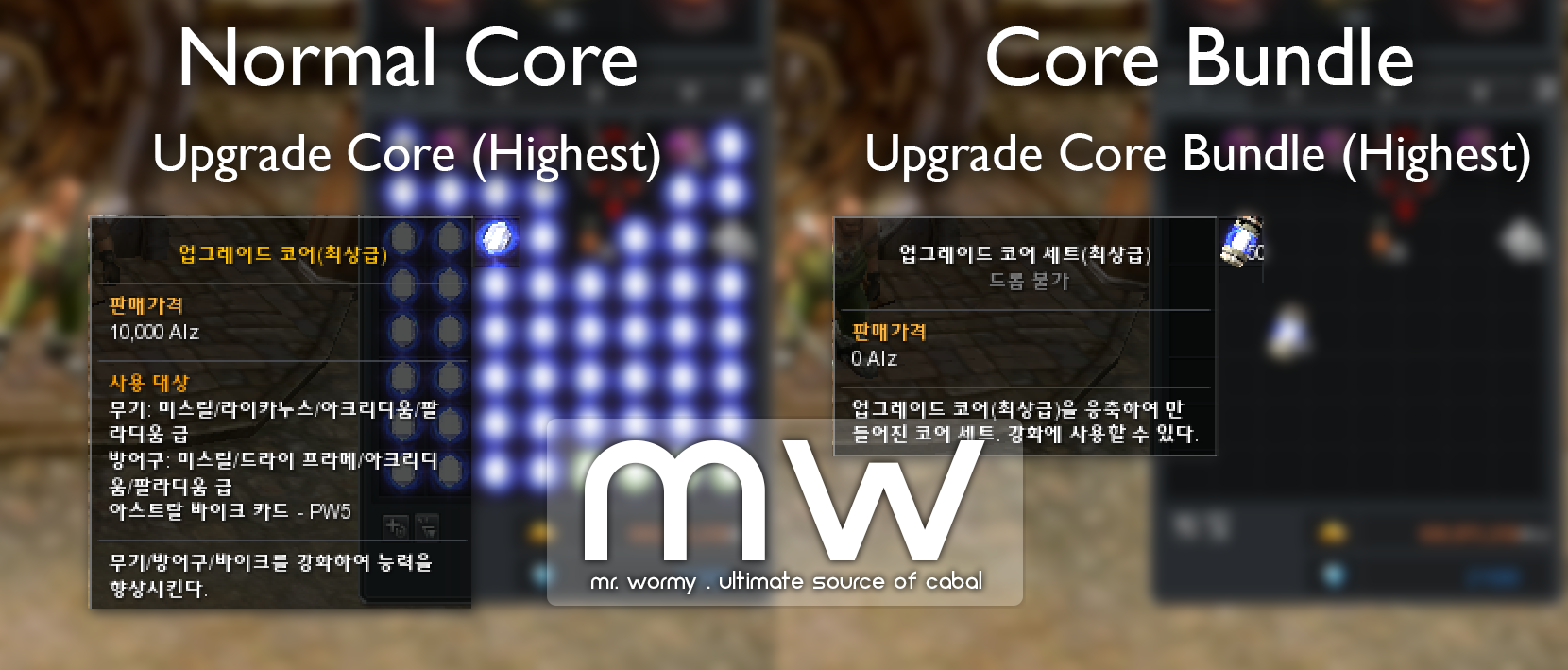 - Cannot select between normal core or Core Bundle while upgrading, core will be used by left to right, top to bottom in the Inventory UI