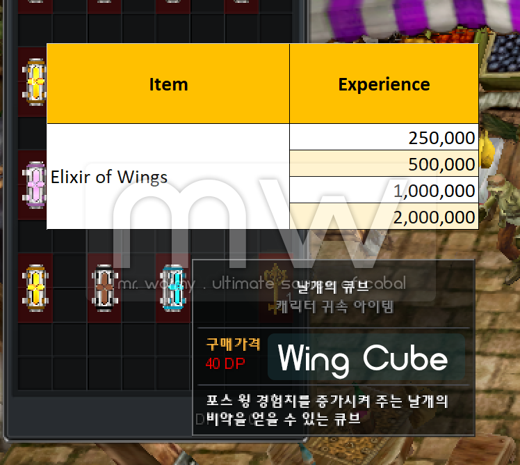 - Elixir of Wings is the item that character who equips Force Wing can use for gaining Force Wing experience