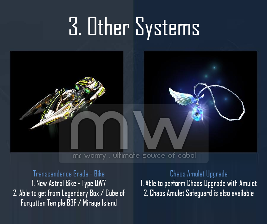 These contents are being worked on right now, first patch for Episode 23 was already released to Test Server with Astral Bike – Type QW7. You can check it out right below (it’s still hot :P)