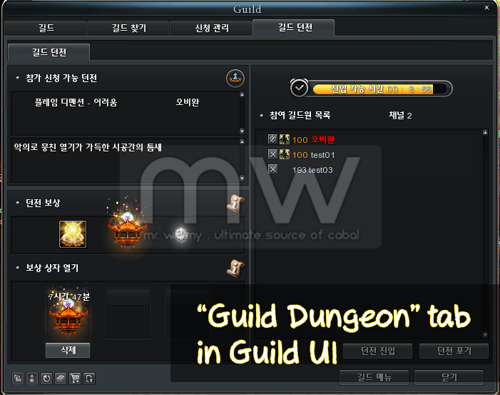 - Any members who is unable to enter at that time can still be able to enter manually by clicking on “Warp” button in “Guild Dungeon” UI