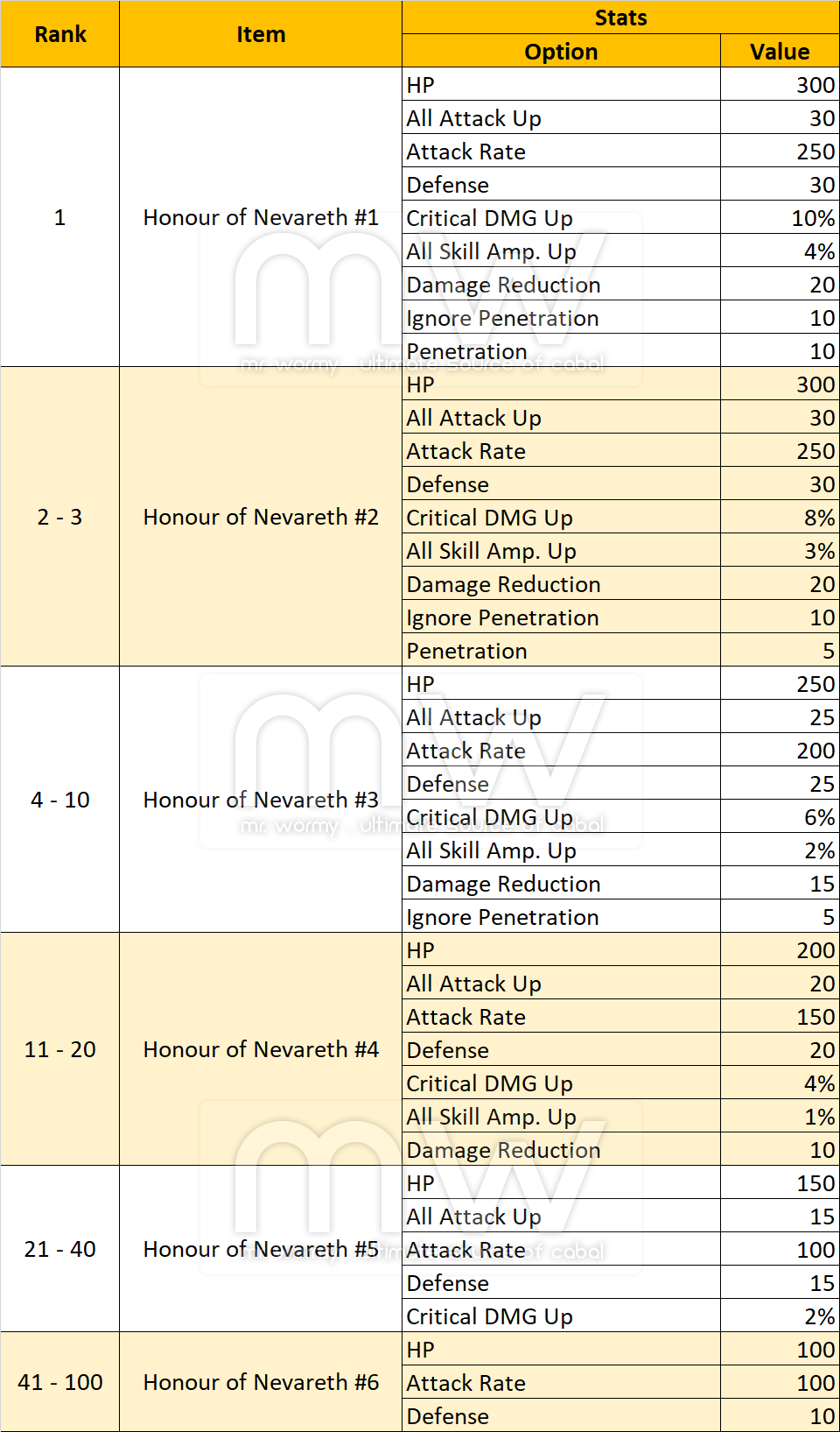 - Change the “Baldus Token” into “Honour of Nevareth” based on the final ranking