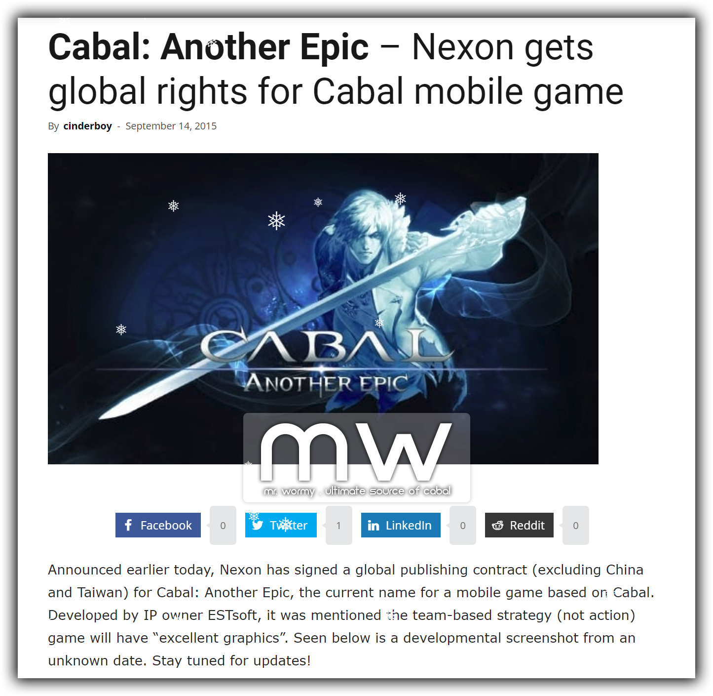 By September 2015, another time the hype for Cabal Mobile was risen. According to M M O Culture news page, the mobile game might have name as Cabal Another Epic. And Nexon got the right to publish the game globally (except for China and Taiwan).