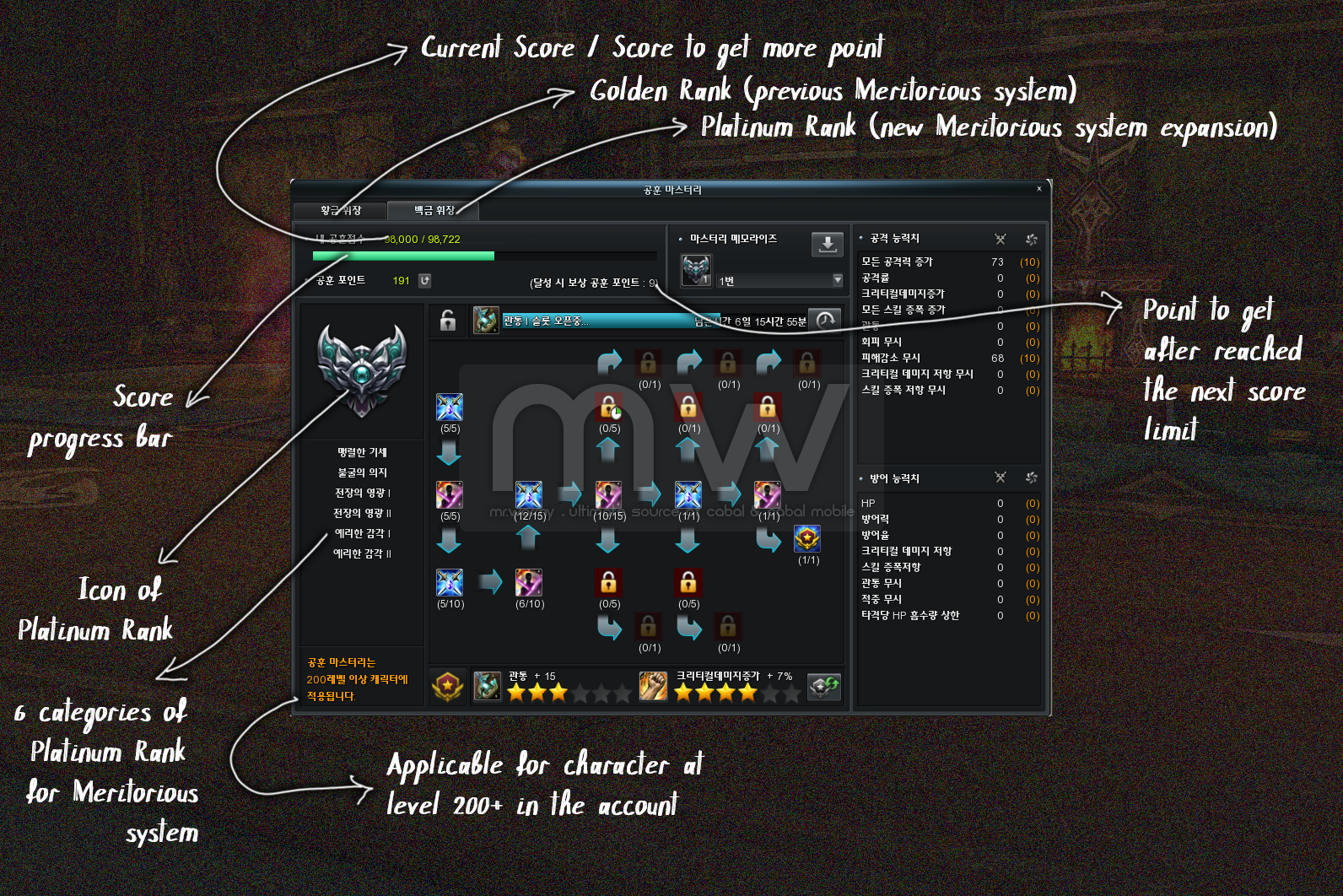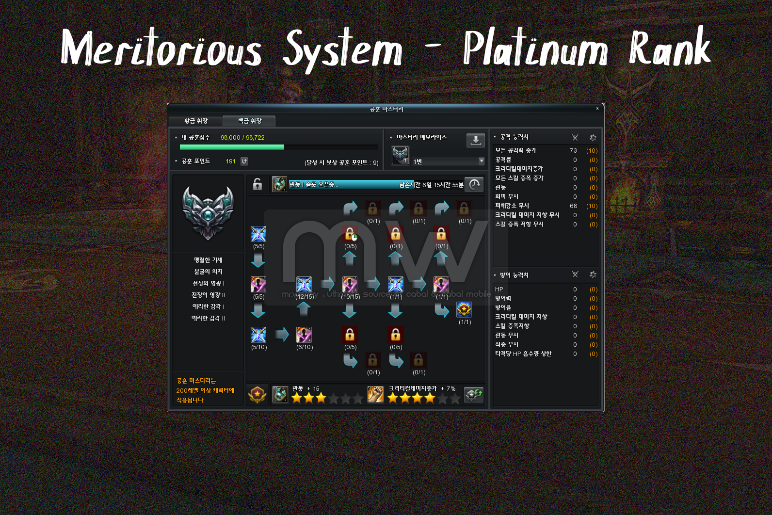 • Platinum Rank: New Meritorious grade system. Applicable for characters at 200+ in the account.