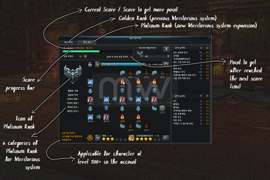 - Platinum Rank: New Meritorious grade system. Applicable for characters at 200+ in the account.