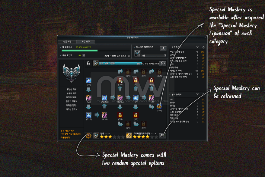 - Special Mastery can be activated when the slot “Special Mastery Expansion” of each category is acquired