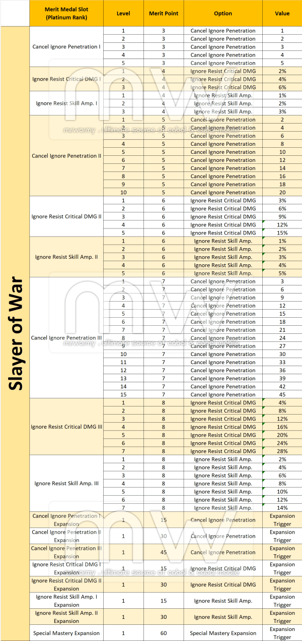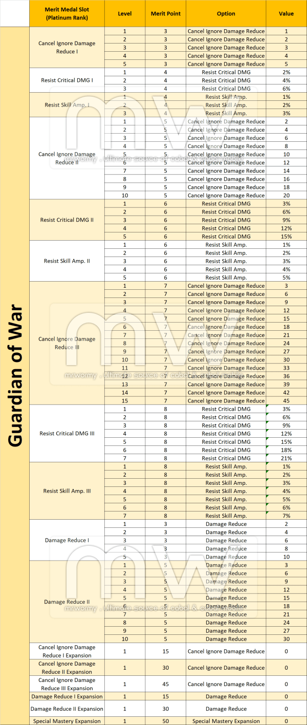- Special item for reducing time of opening slot of Platinum Rank in Meritorious system