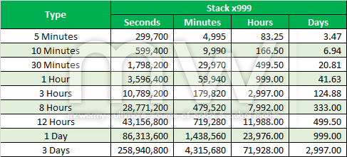 - I’ve made a compilation of Time Reducer per Stack of 999 that you can use for certain calculation