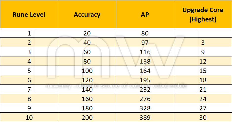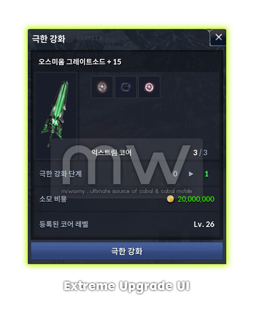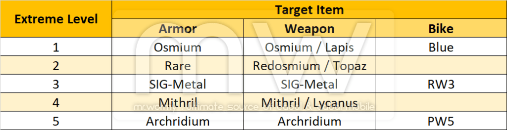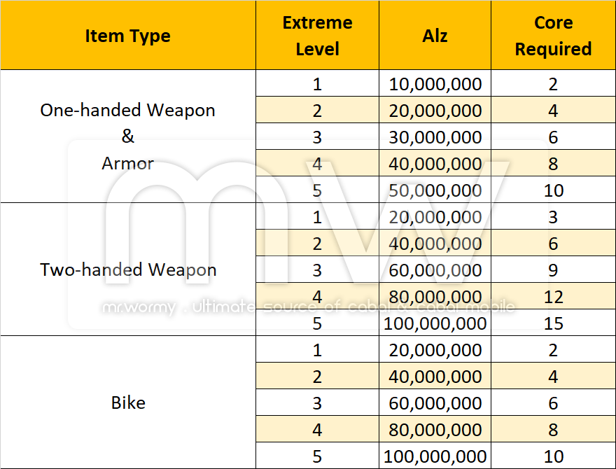 - Core and Alz depend on current Extreme level and item type (normal item / two-handed weapon item)