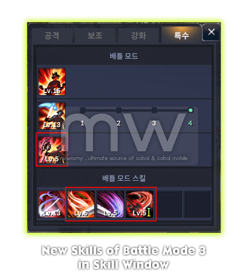- Once 4 times of basic Attack skills (A/B) are casted, Special Attack I can be activated within 4 seconds
