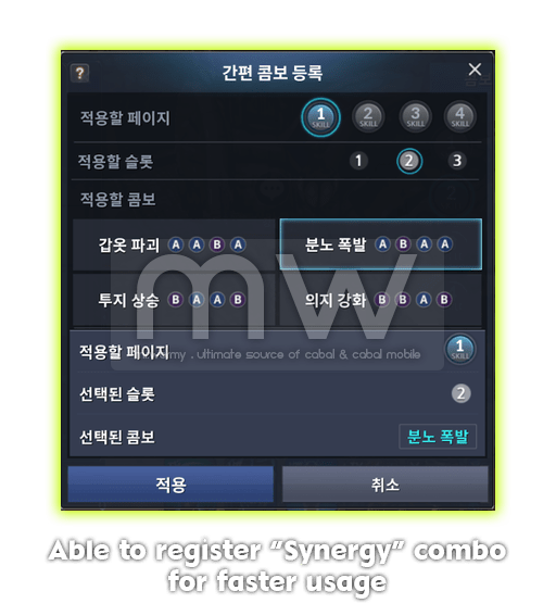 - Special “Synergy” effect will be casted if character uses a specific sequence of basic Attack skills (A/B)