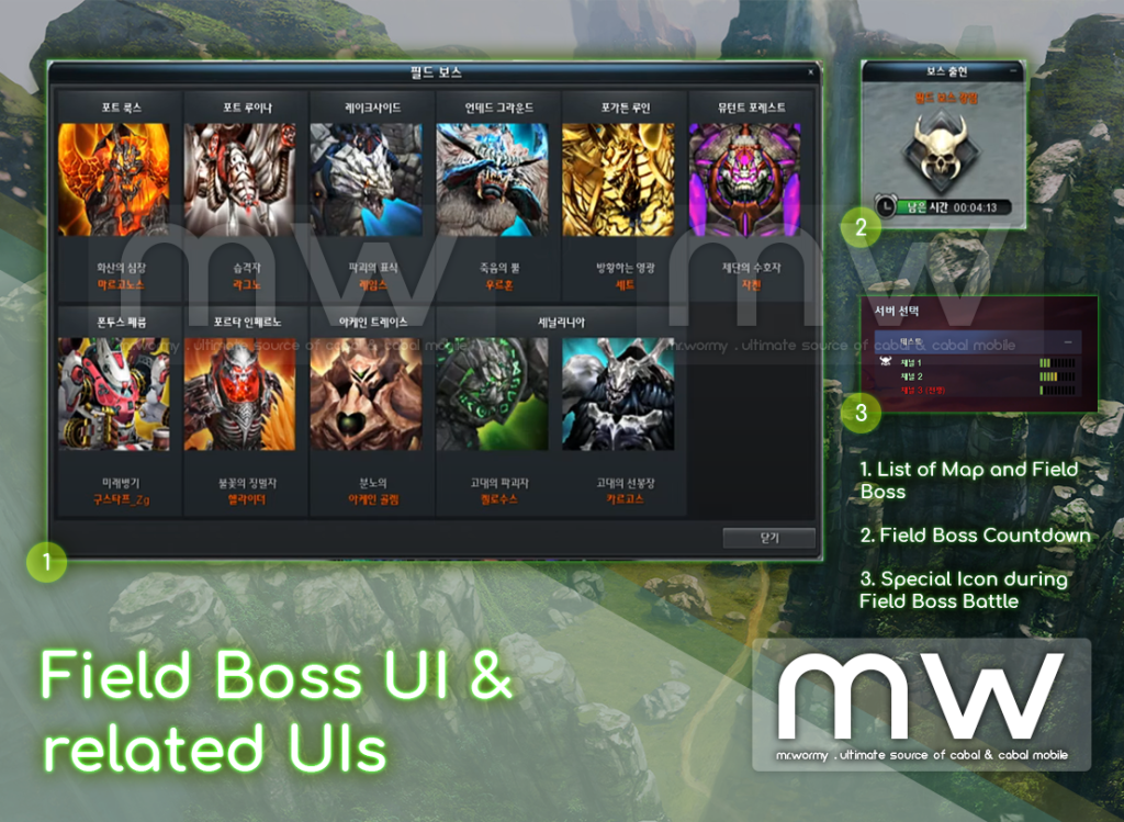 - Special icon will be displayed next to the channel during the Field Boss Battle (not in the countdown time, only during the battle time)