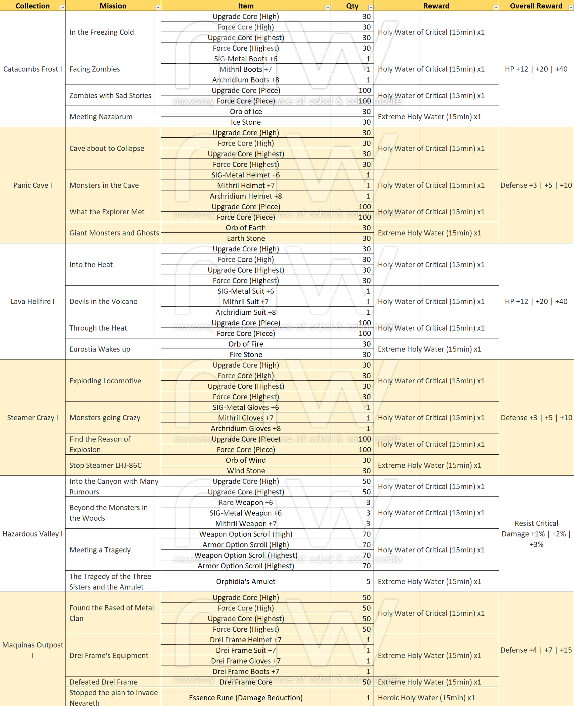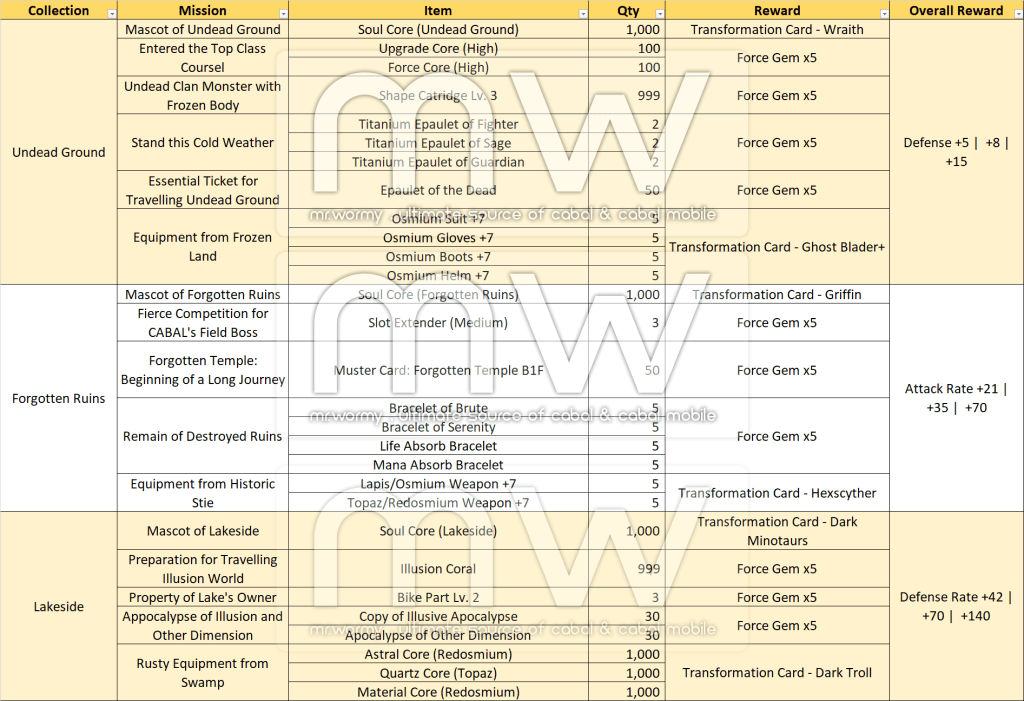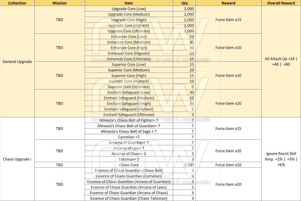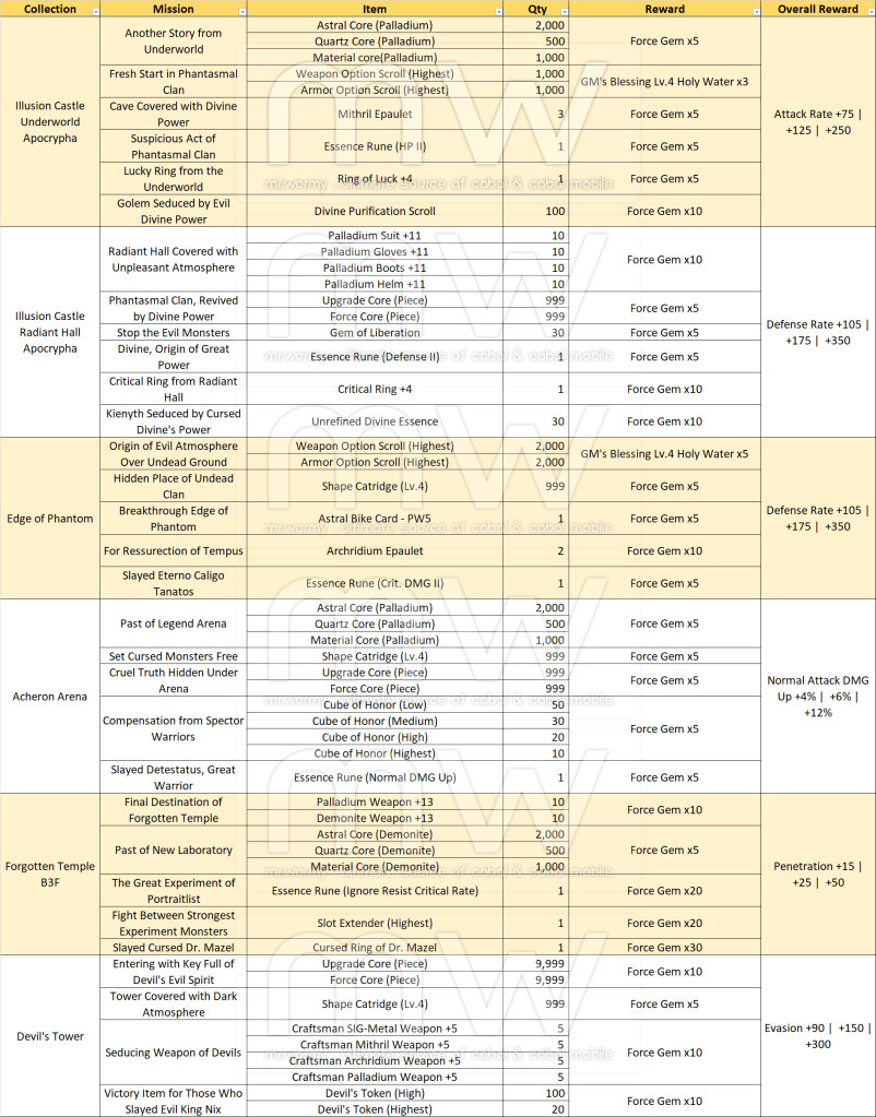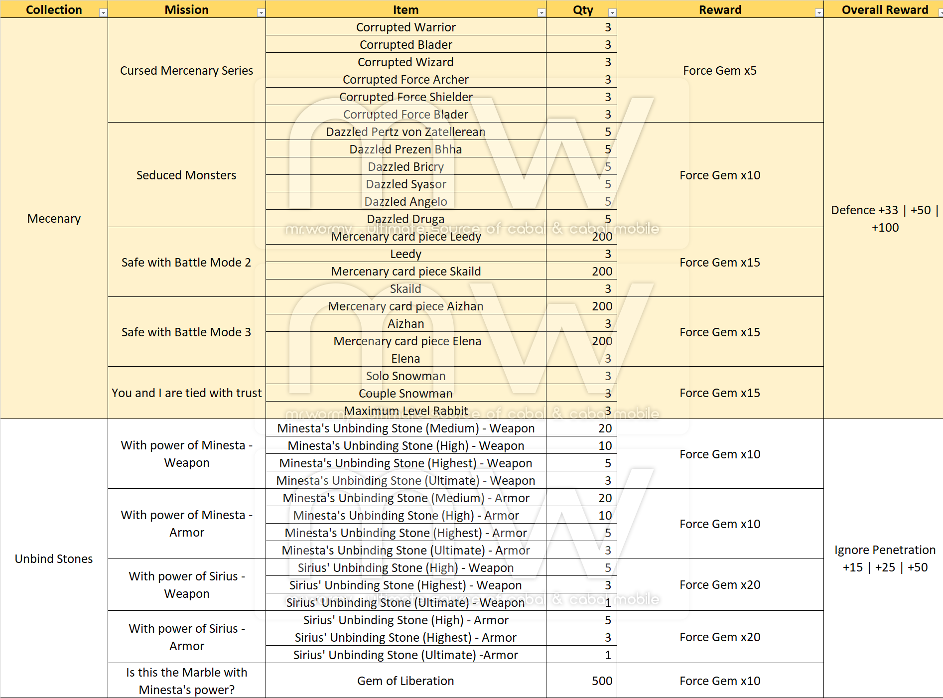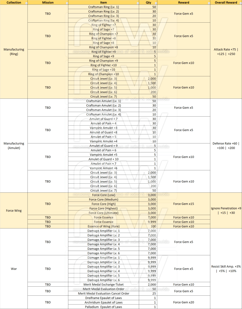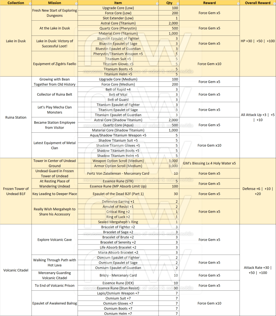 - Force Gem / Items will be rewarded through ‘Get Reward’ button in UI when collection mission is completed (Shows Tooltip when mouse is over)