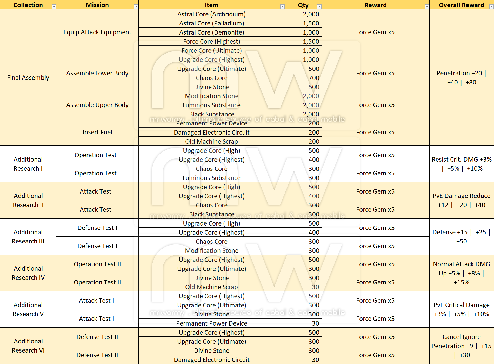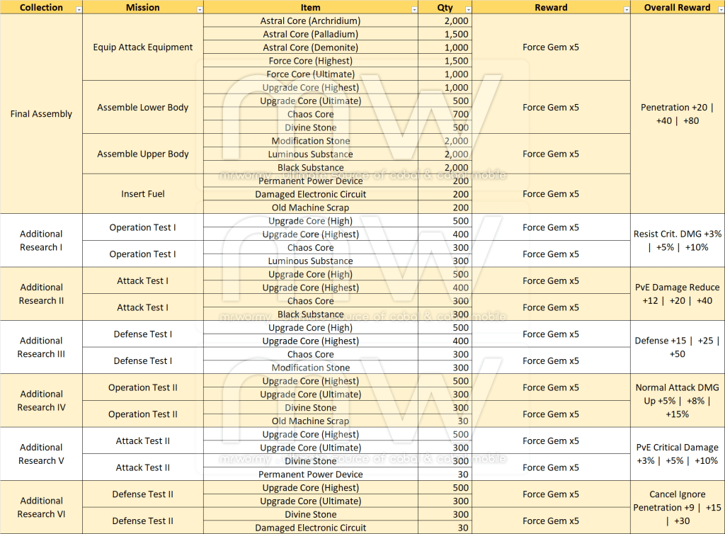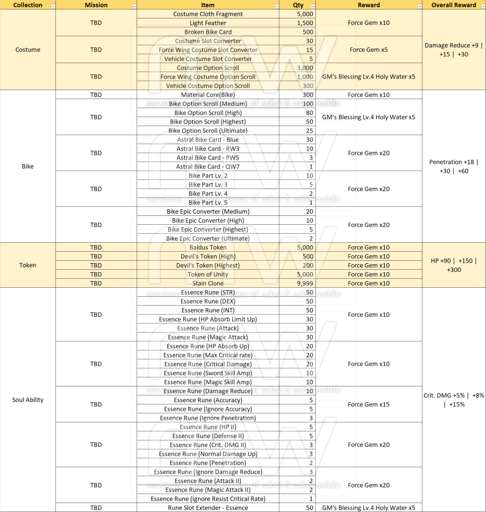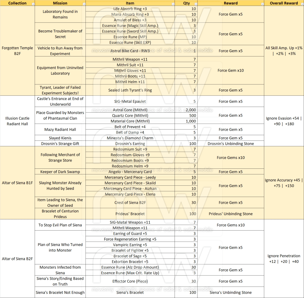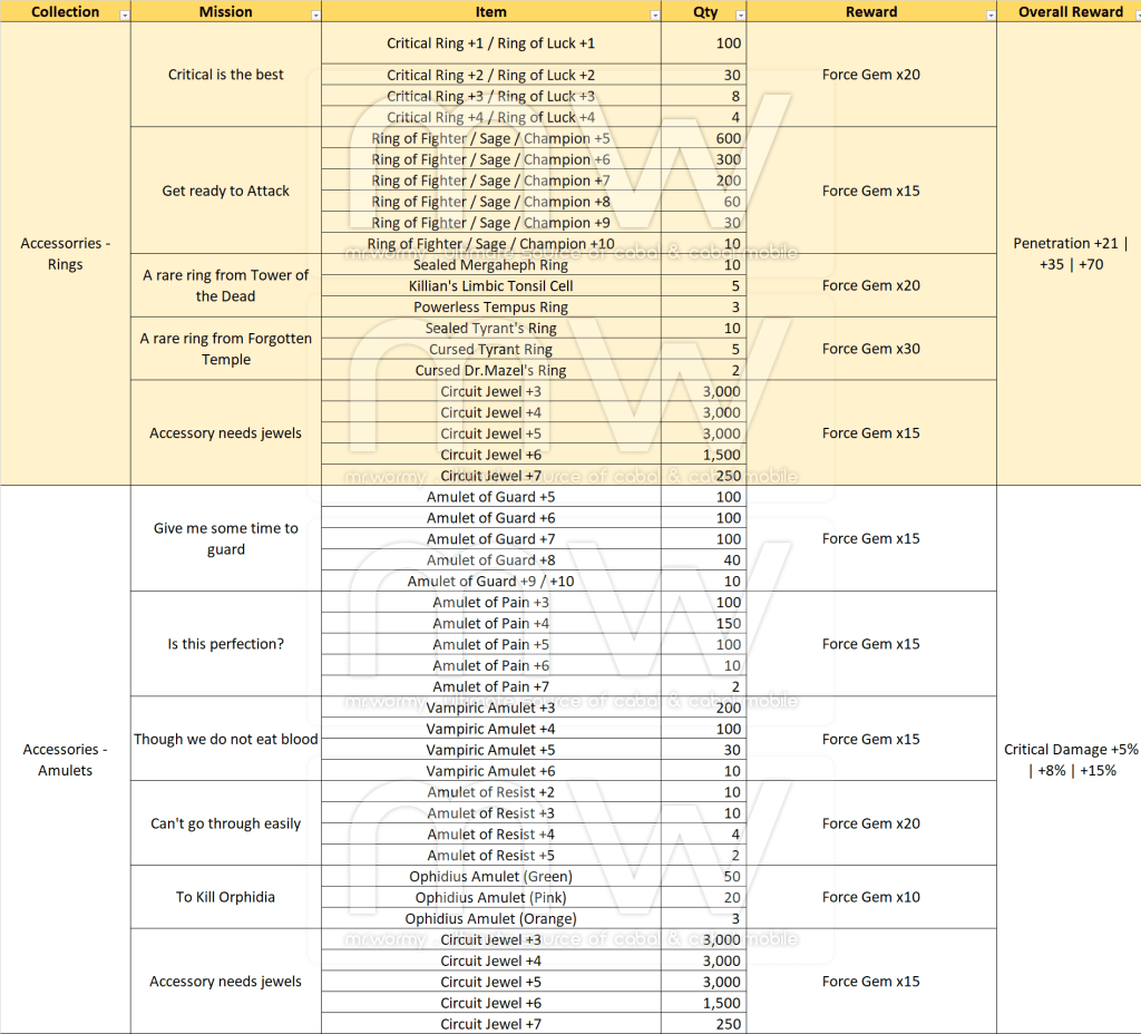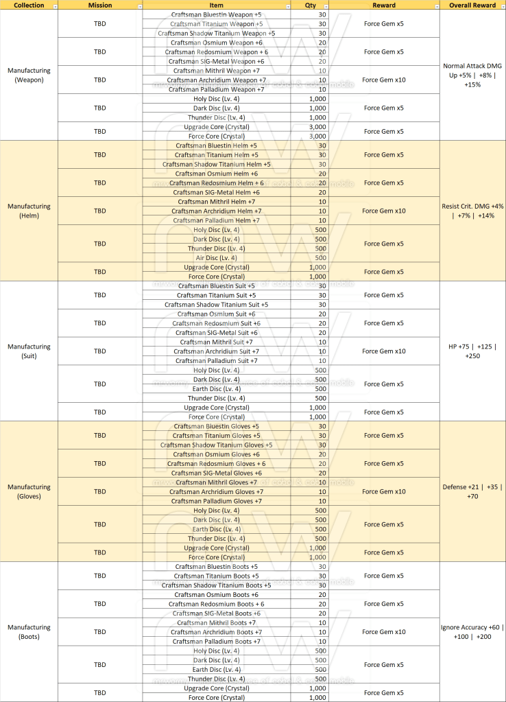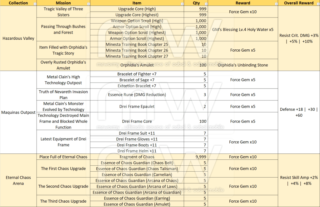 - Force Gem / Items will be rewarded through ‘Get Reward’ button in UI when collection mission is completed (Shows Tooltip when mouse is over)