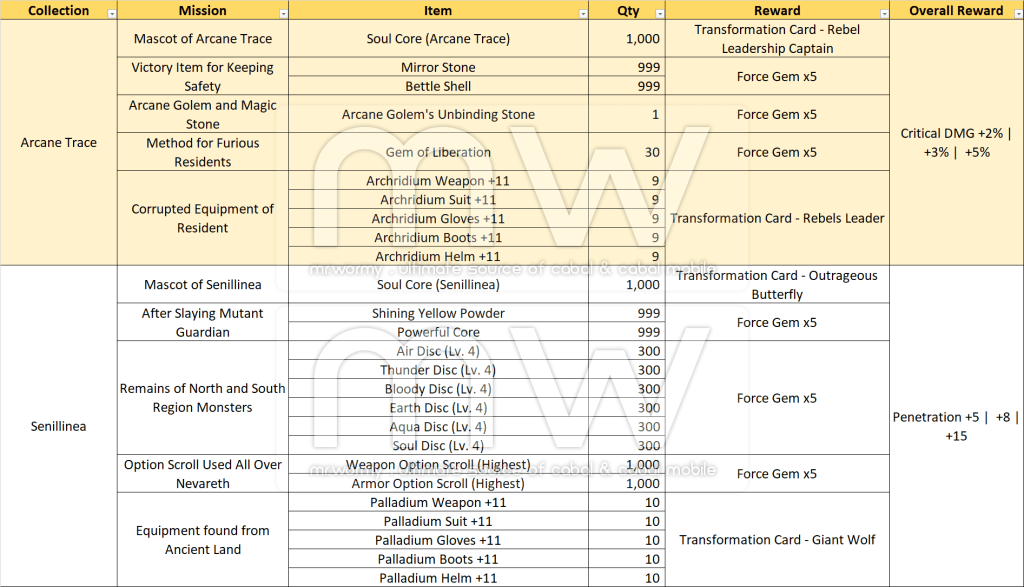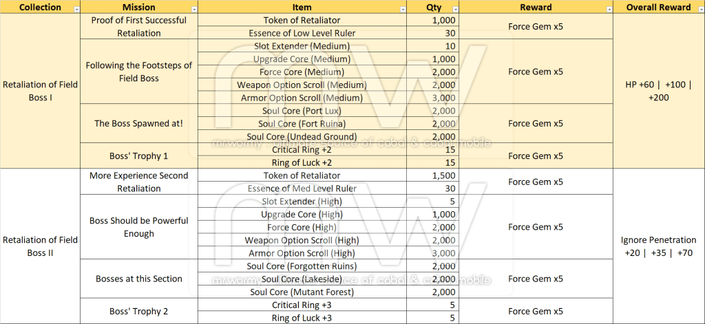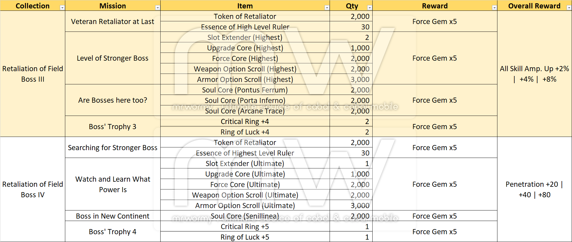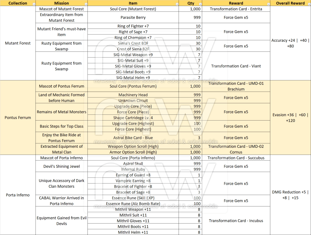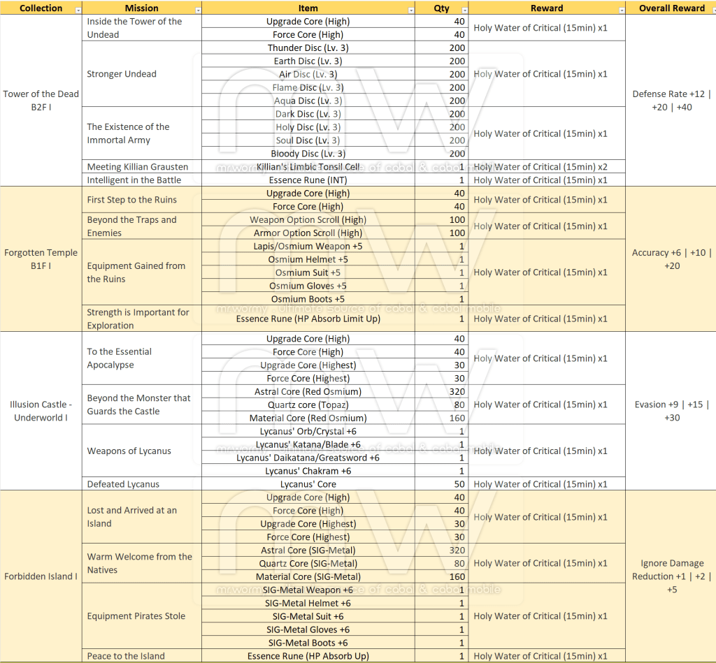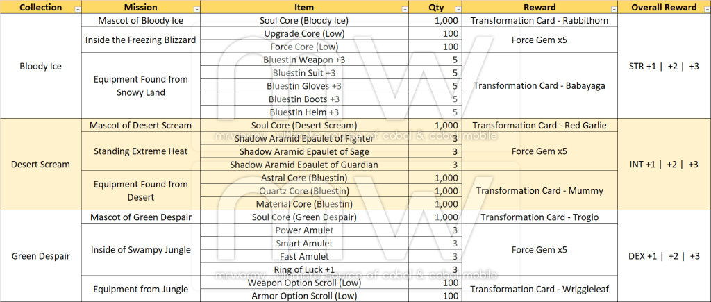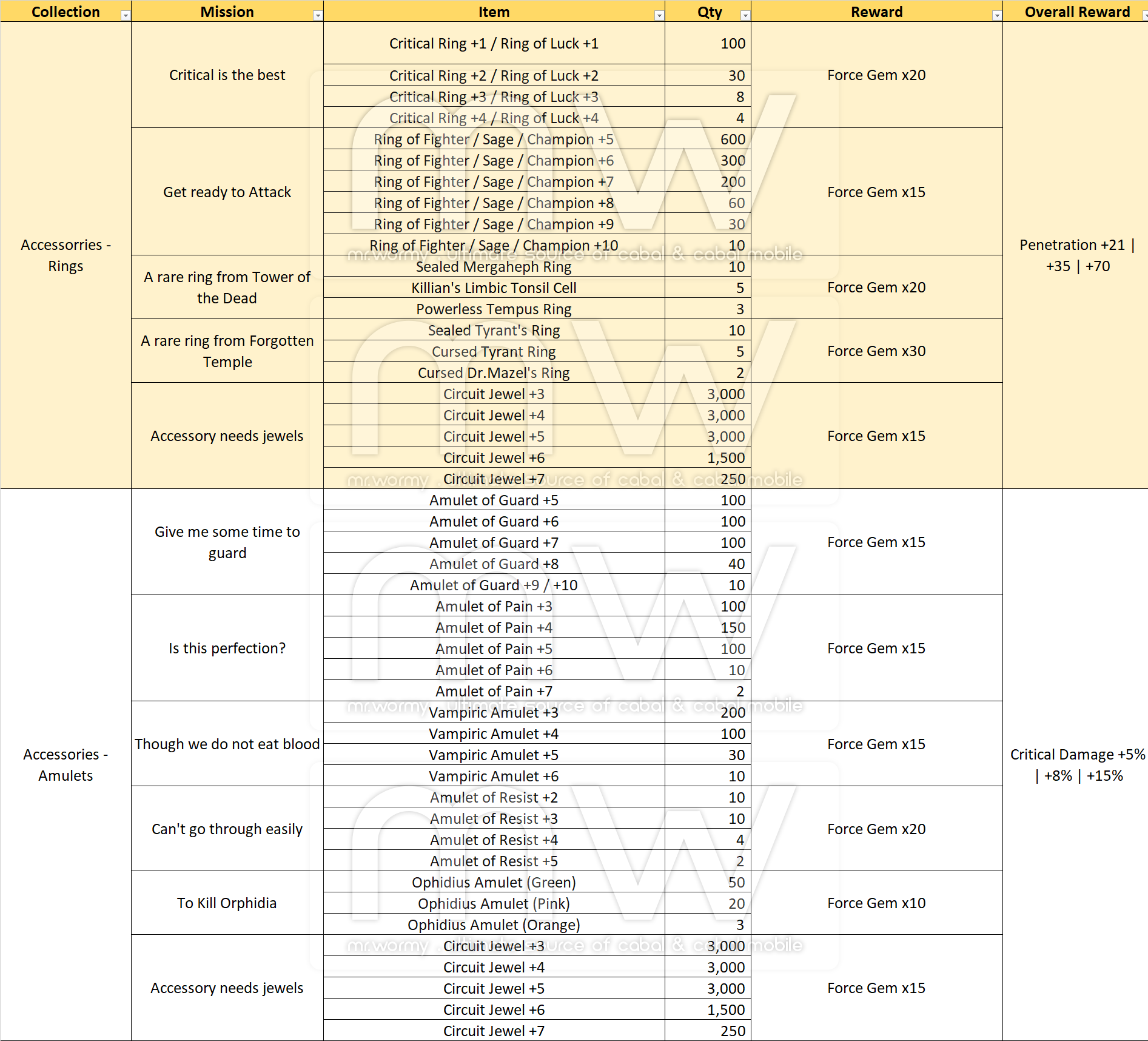 - Force Gem / Items will be rewarded through ‘Get Reward’ button in UI when collection mission is completed (Shows Tooltip when mouse is over)