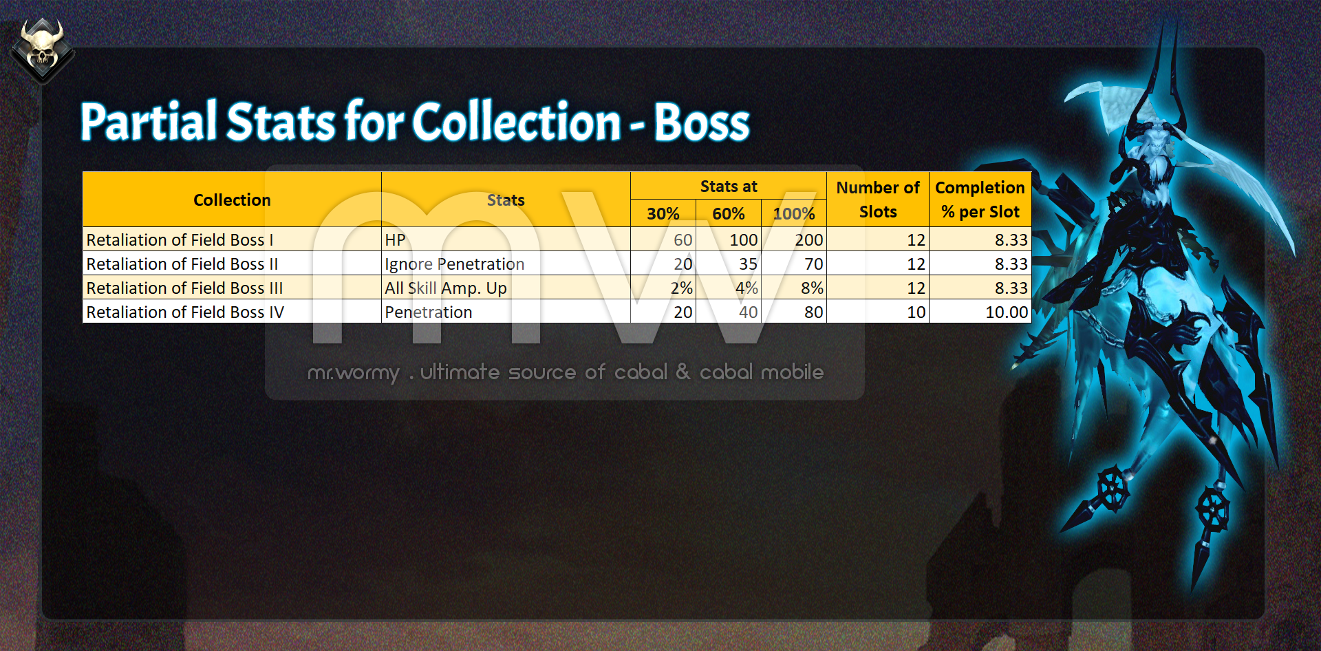 - By Episode 24 Part 2, you will also get the stats when you reach 30%, 60% of the Collection completeness