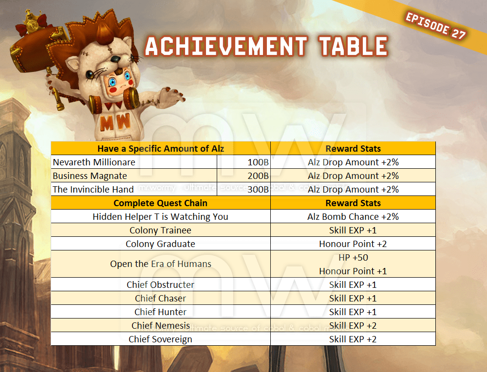 This is a very important part, it’s long but worth to read! This will describe how Achievement and Title change in the Episode 27 update.