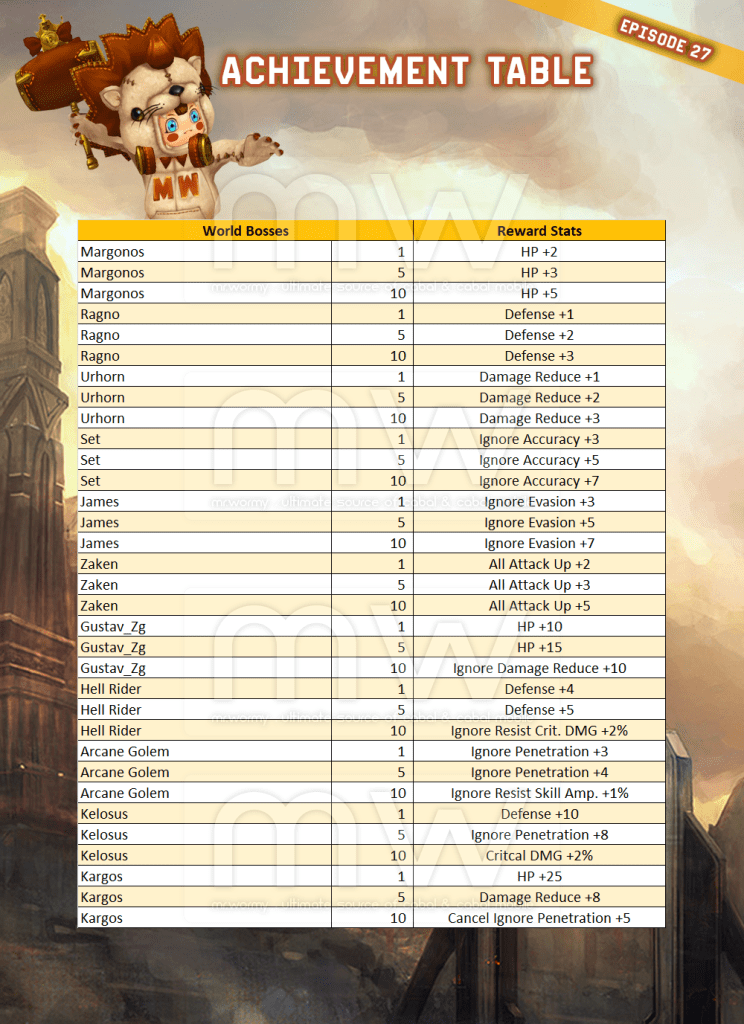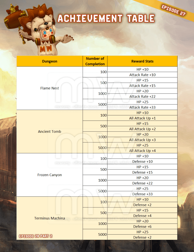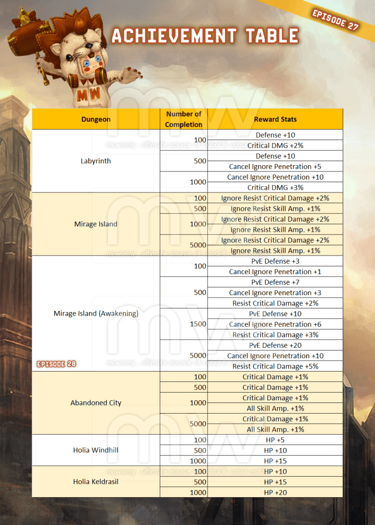 Achievement & Title System gets the renewal by Episode 27, you can get the bonus from all of dungeons that you farmed, disregarding the title you equip. The post will go through the changes of Achievement & Title System and list of all Titles of: