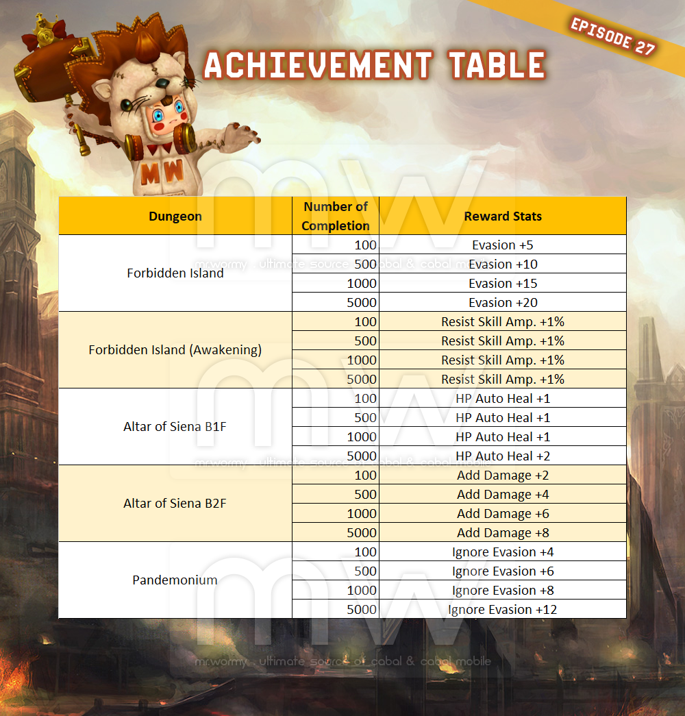- On 23-Jun-2021: Updated “Achievement & Title Renewal” with some new dungeons. Thanks xMegumin @CabalEU for notifying me.