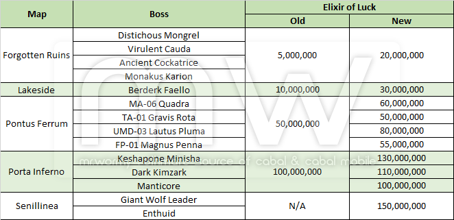 - Increase the Amount and Drop Rate of the Elixir of Luck dropped at the tune if defeating the old Field Bosses