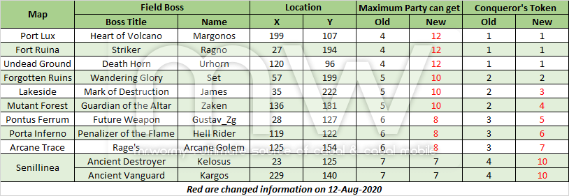 - Change number of maximum parties can get reward and amount of Conqueror’s Token based on the difficulty of the Field Boss