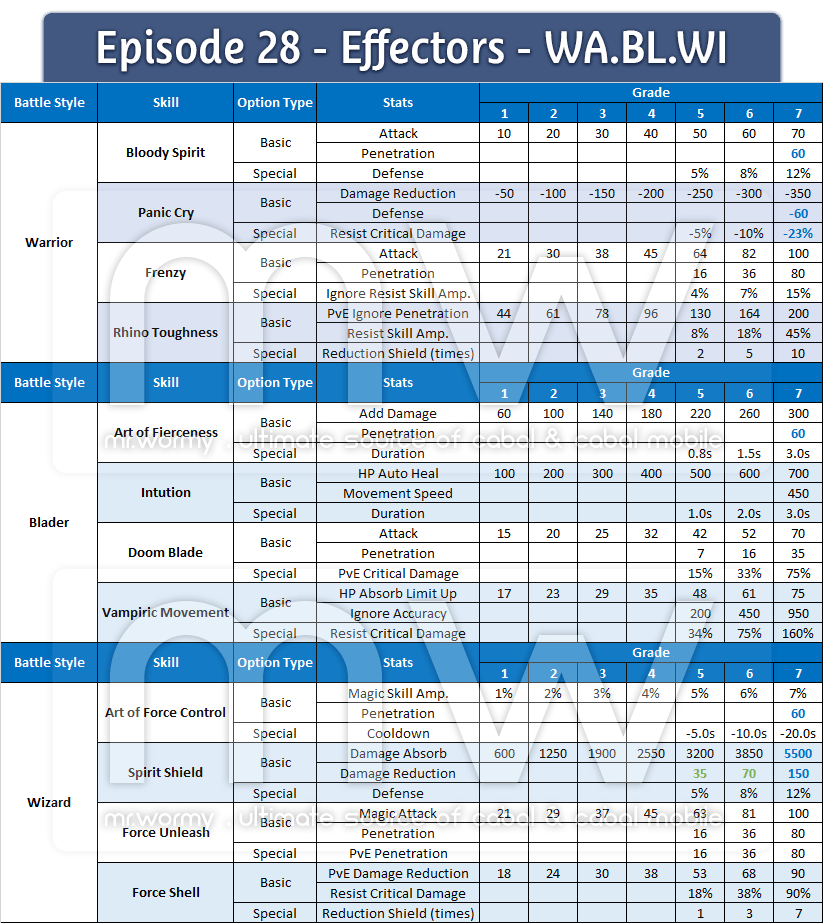 - Updated by 16-Dec-2020: 2 new Effectors of Dark Mage: Art of Blood Thrust, Bone Shield (thanks PhucPP@CabalGSP)