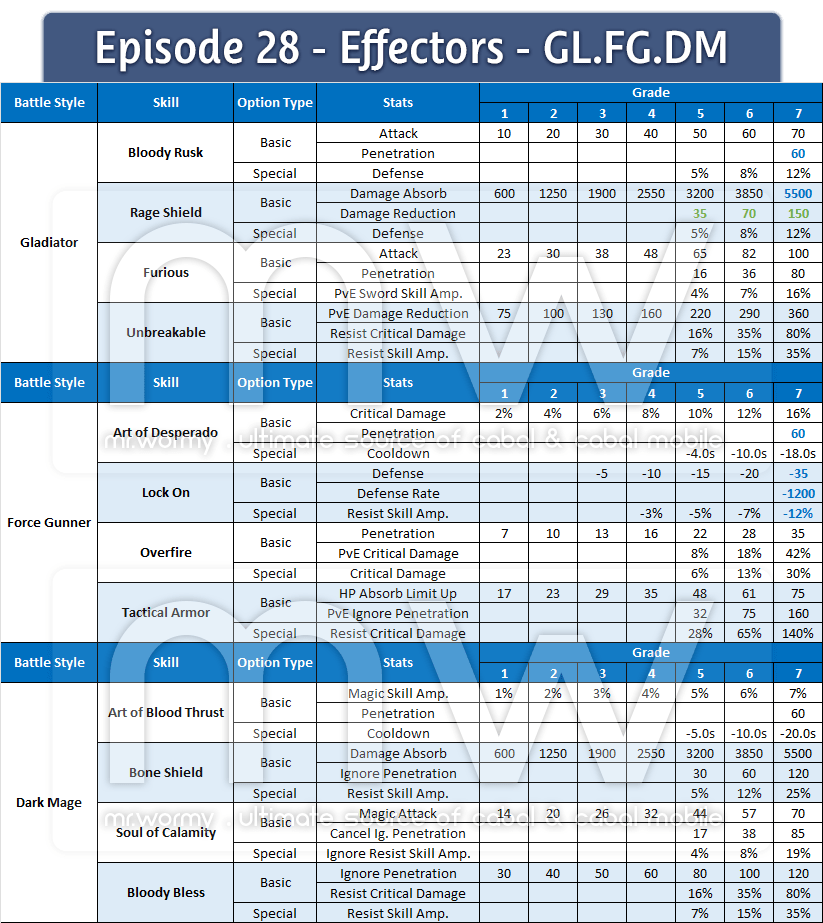 - Updated by 01-Nov-2021: Stats of GL Effector – Rage Shield at Lv7 DMG Reduce is 150 (was 100)