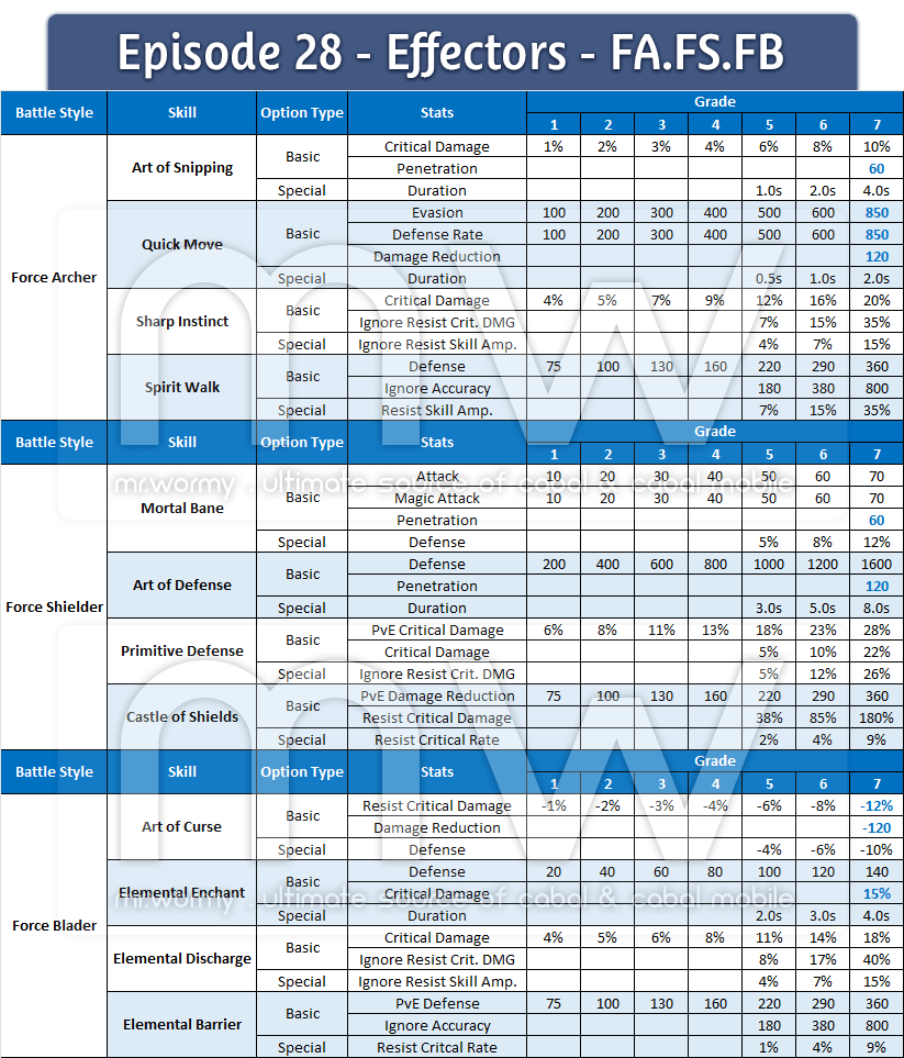 - Moved the Stats of pre-EP28 Effectors to bottom of the page and moved the Stats of EP28 Effectors to the upper part.