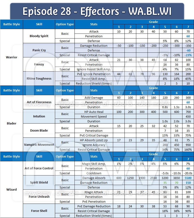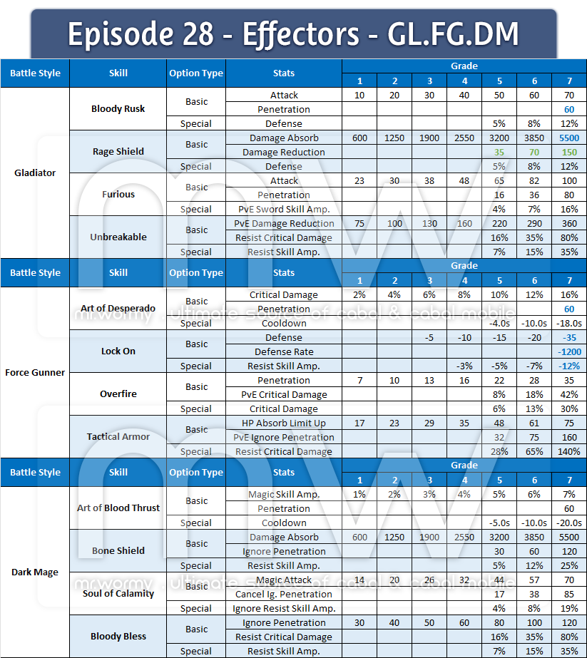 - Updated by 01-Nov-2021: Stats of GL Effector – Rage Shield at Lv7 DMG Reduce is 150 (was 100)