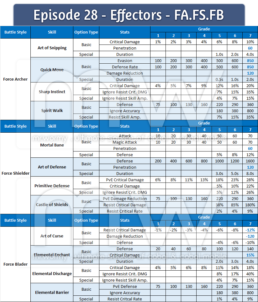 - Moved the Stats of pre-EP28 Effectors to bottom of the page and moved the Stats of EP28 Effectors to the upper part.
