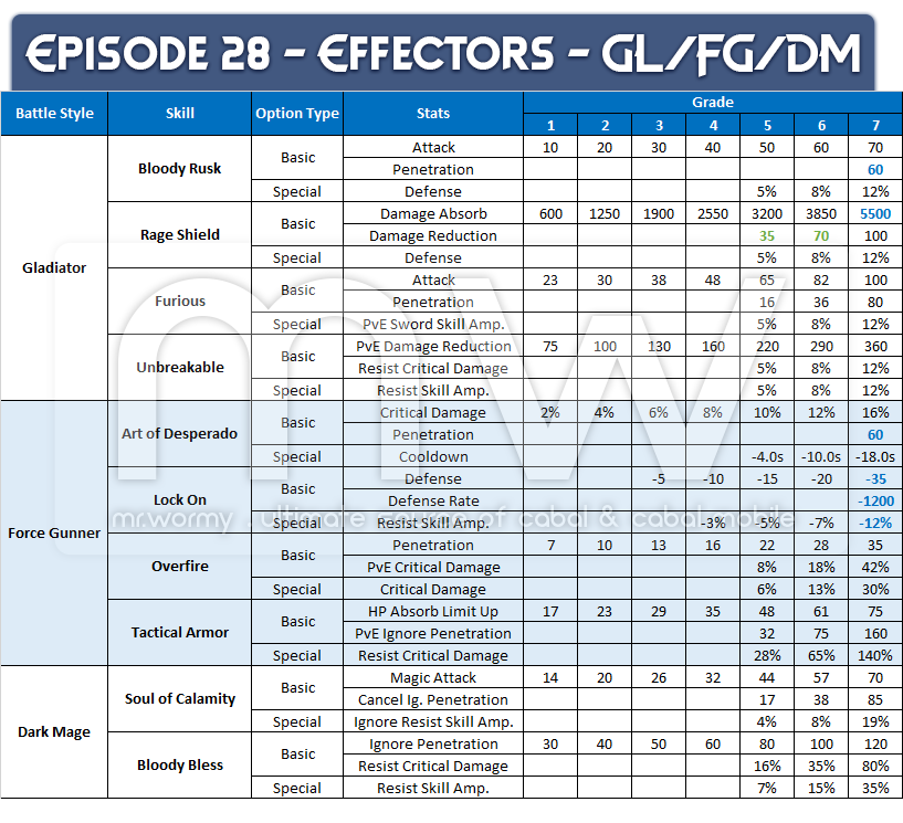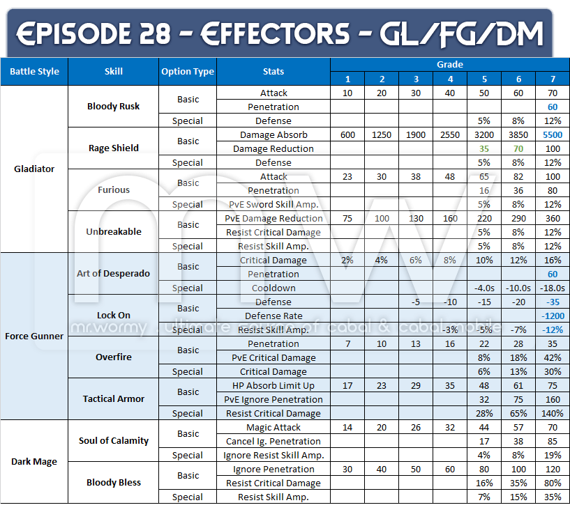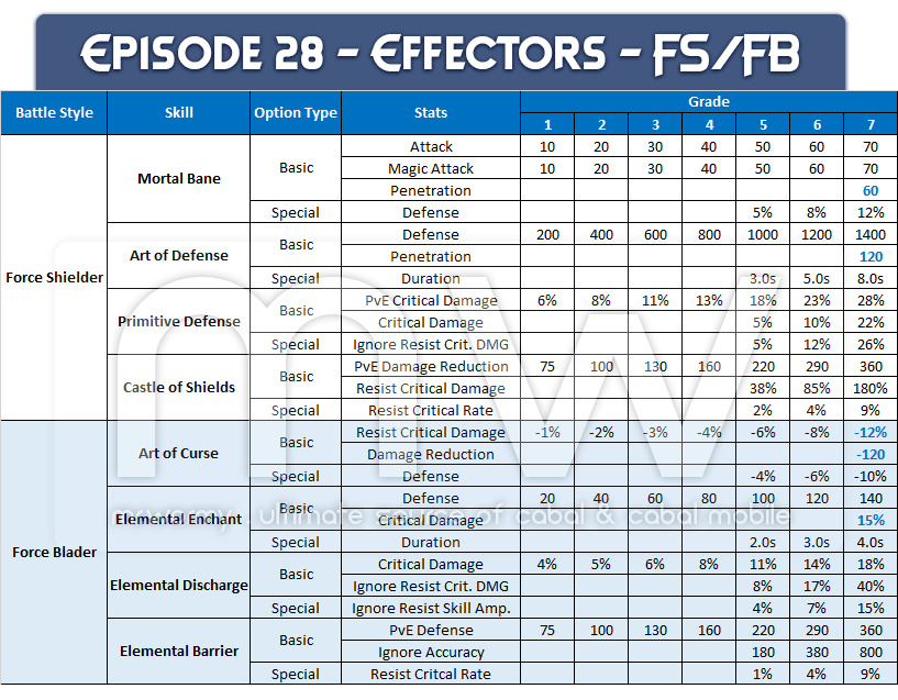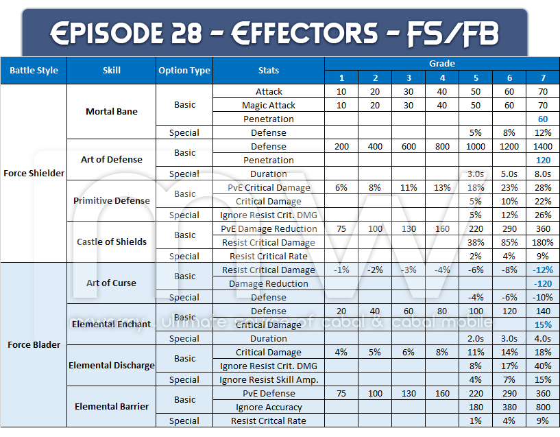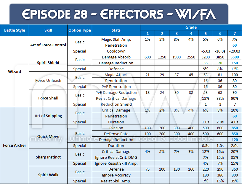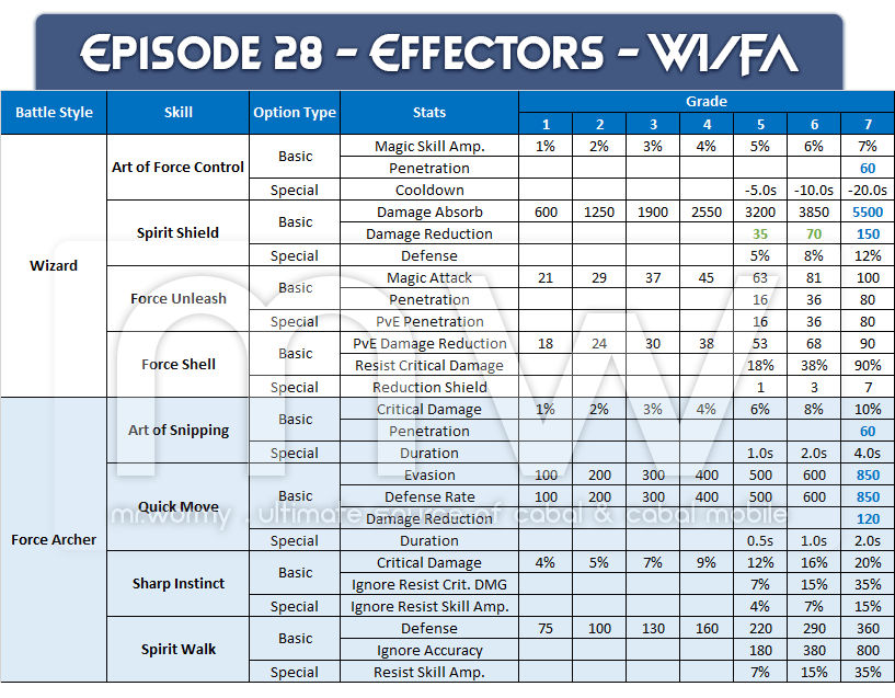- For Force Blader, the “Force Field” effect will be available until the duration ends, even “Absolute Evasion” has been expired due to amount of hits passed the limit