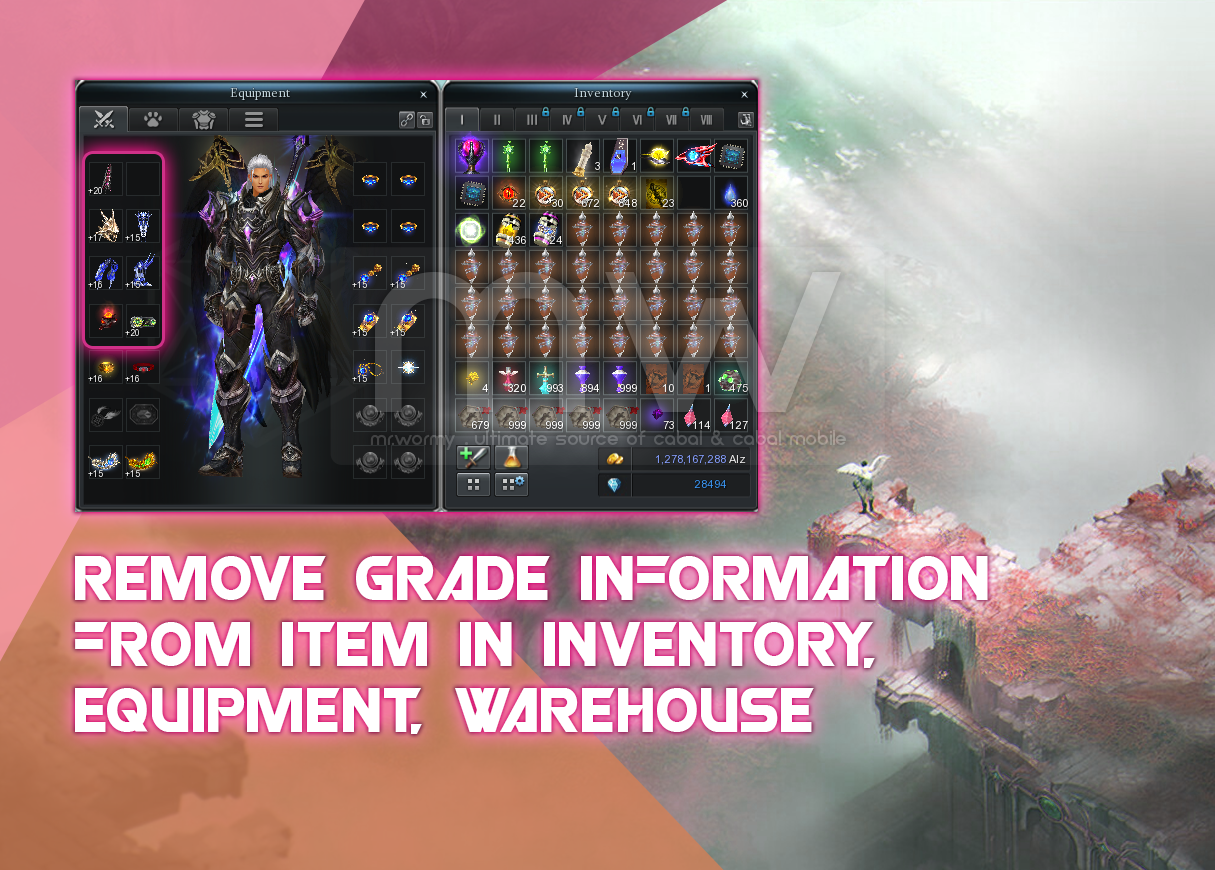 - Remove the “Grade” information of items in inventory / equipment / warehouse / …