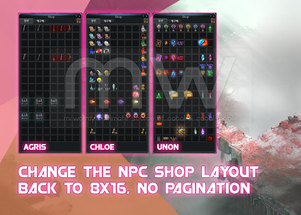 - Change the layout of Costume Warehouse to 8×16 (old style)