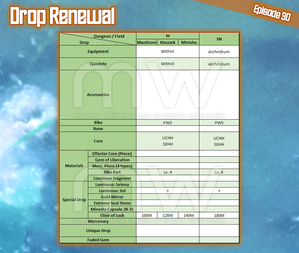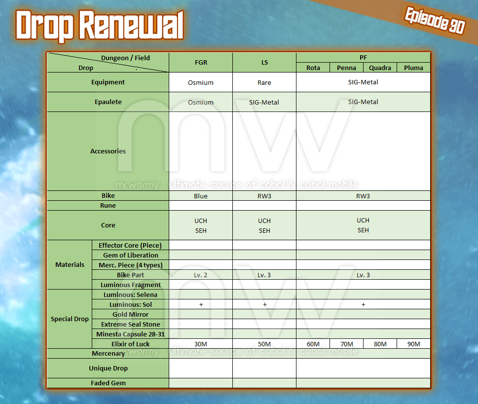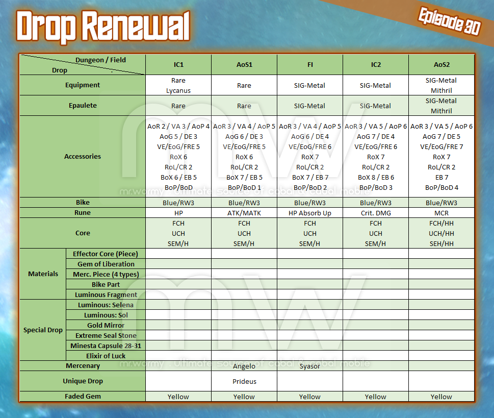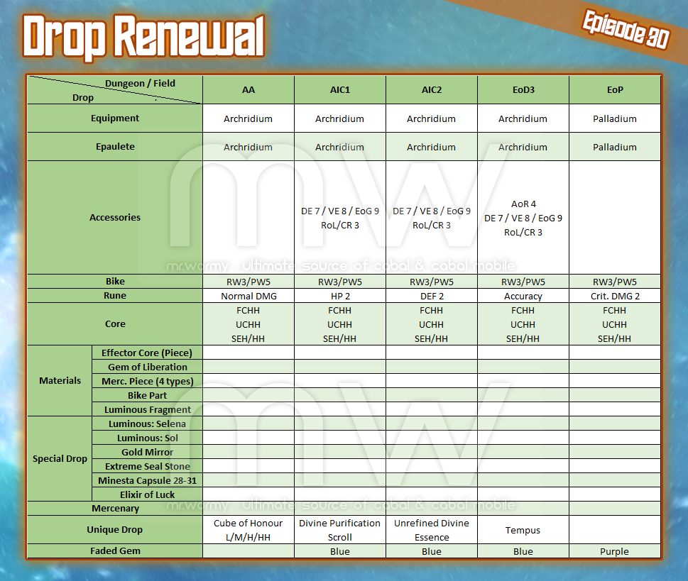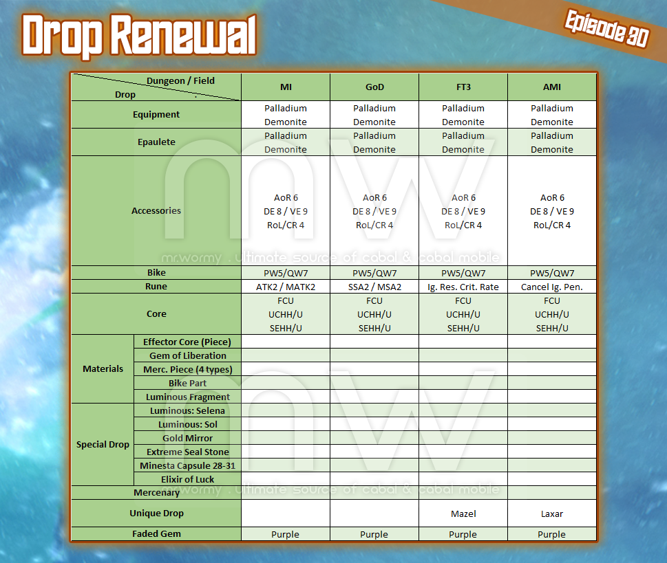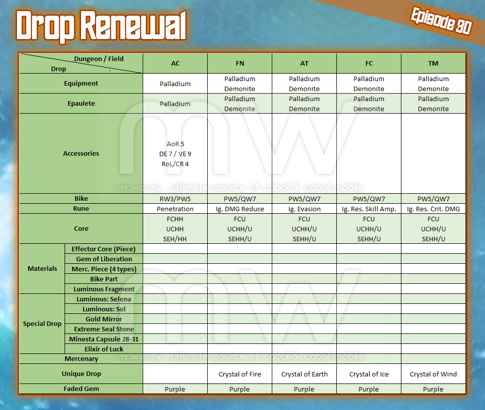The Drop Table Renewal is a part of Episode 30 update for Winter 2021, this might not be the final version of the Drop Table, changes might be applied according to ESTGames.