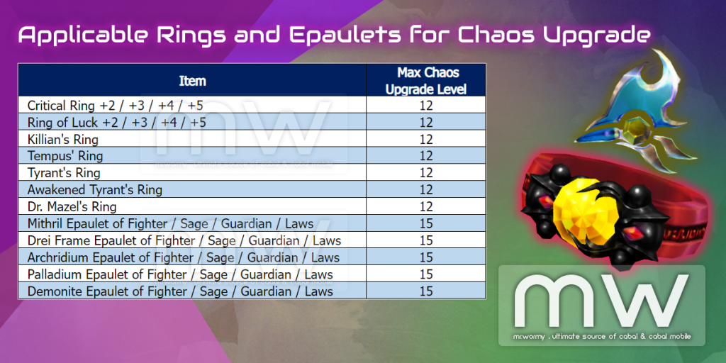 - List of applicable Rings and Epaulets for Chaos Upgrade: