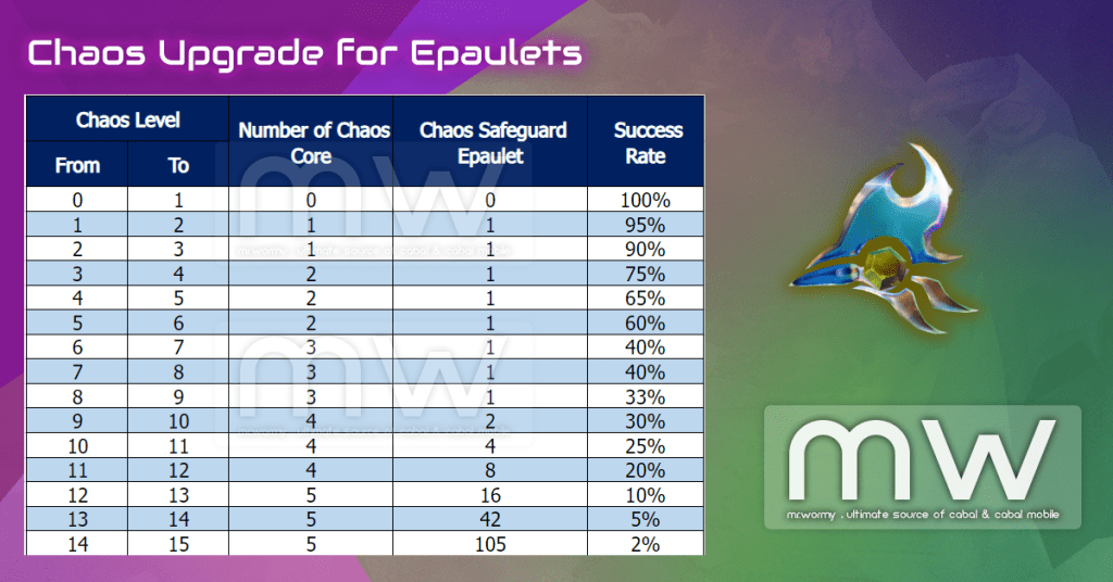 - Once the Ring / Epaulet gets the Chaos Upgrade Level 1, it can be upgrade with Chaos Core (or Chaos Core Set).
