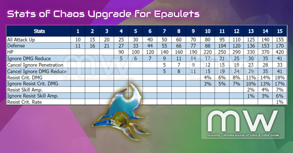 - Stats of Chaos Upgrade of Epaulets: